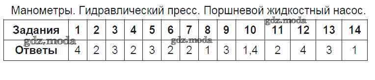 ОТВЕТ на задание № Манометры. Гидравлический пресс. Поршневой жидкостный насос Тесты по Физике 7 класс Чеботарева УМК