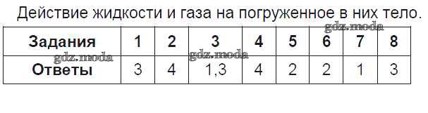 ОТВЕТ на задание № Действие жидкости и газа на погруженное в них тело Тесты по Физике 7 класс Чеботарева УМК