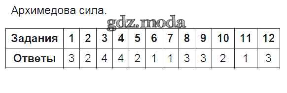 ОТВЕТ на задание № Архимедова сила Тесты по Физике 7 класс Чеботарева УМК