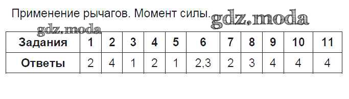 ОТВЕТ на задание № Момент силы. Применение рычагов Тесты по Физике 7 класс Чеботарева УМК