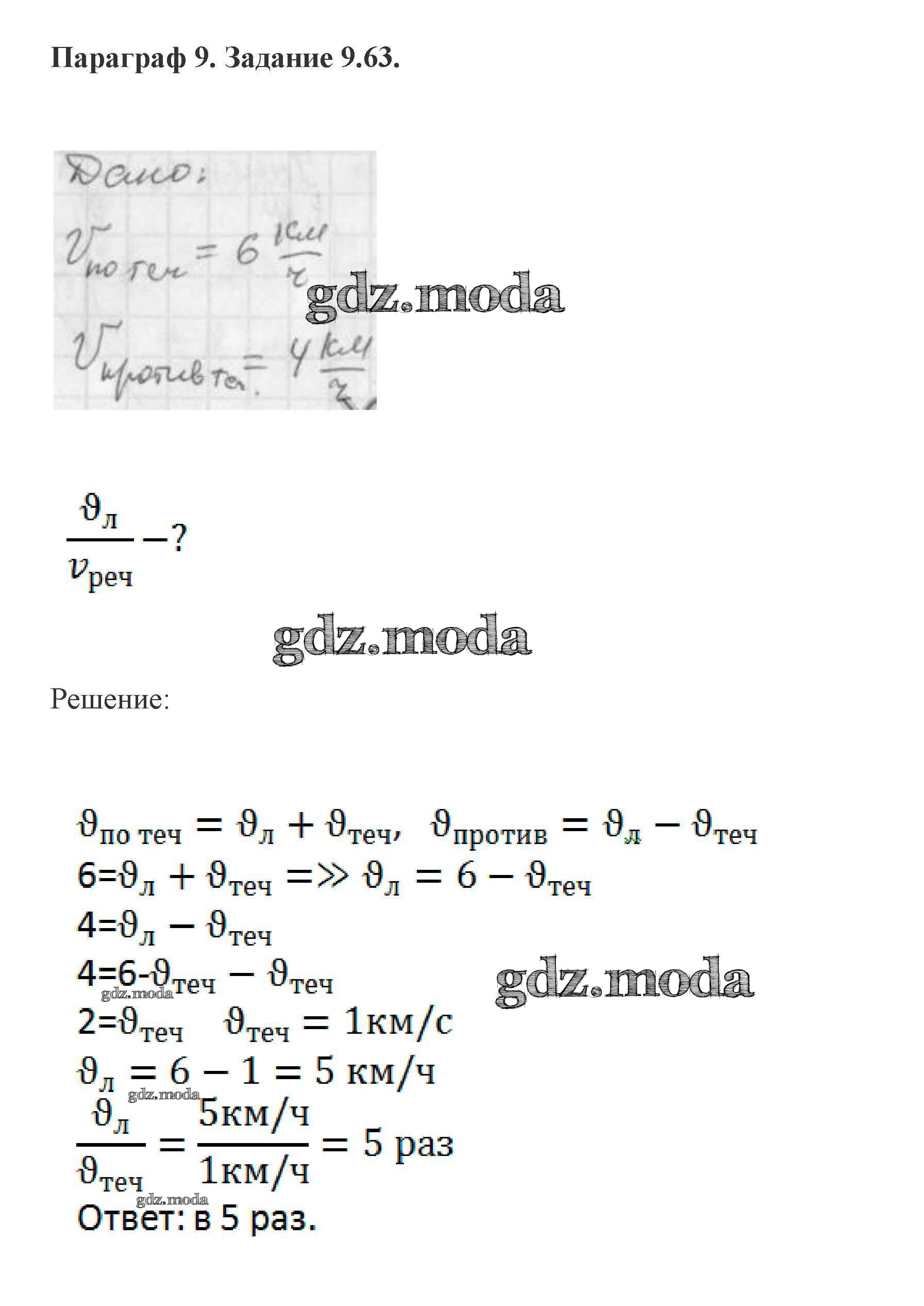 ГДЗ решение к заданию № 63 Физика 7 класс задачник Генденштейн Мнемозина 2015 ФГОС бесплатно на гдз.мода!