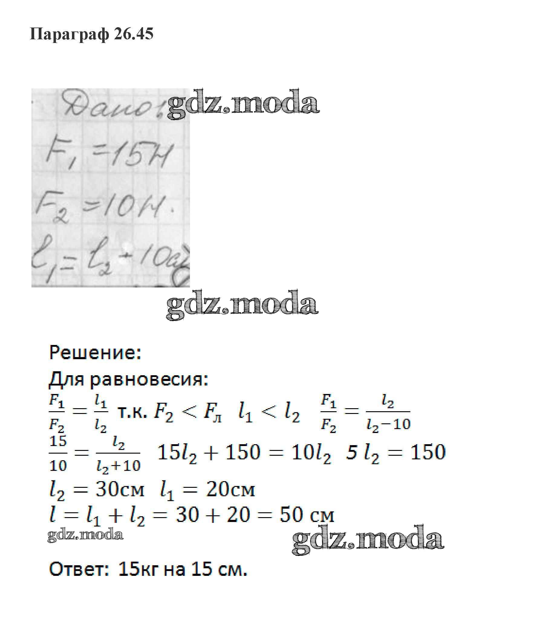 ГДЗ решение к заданию № 45 Физика 7 класс задачник Генденштейн Мнемозина 2015 ФГОС бесплатно на гдз.мода!