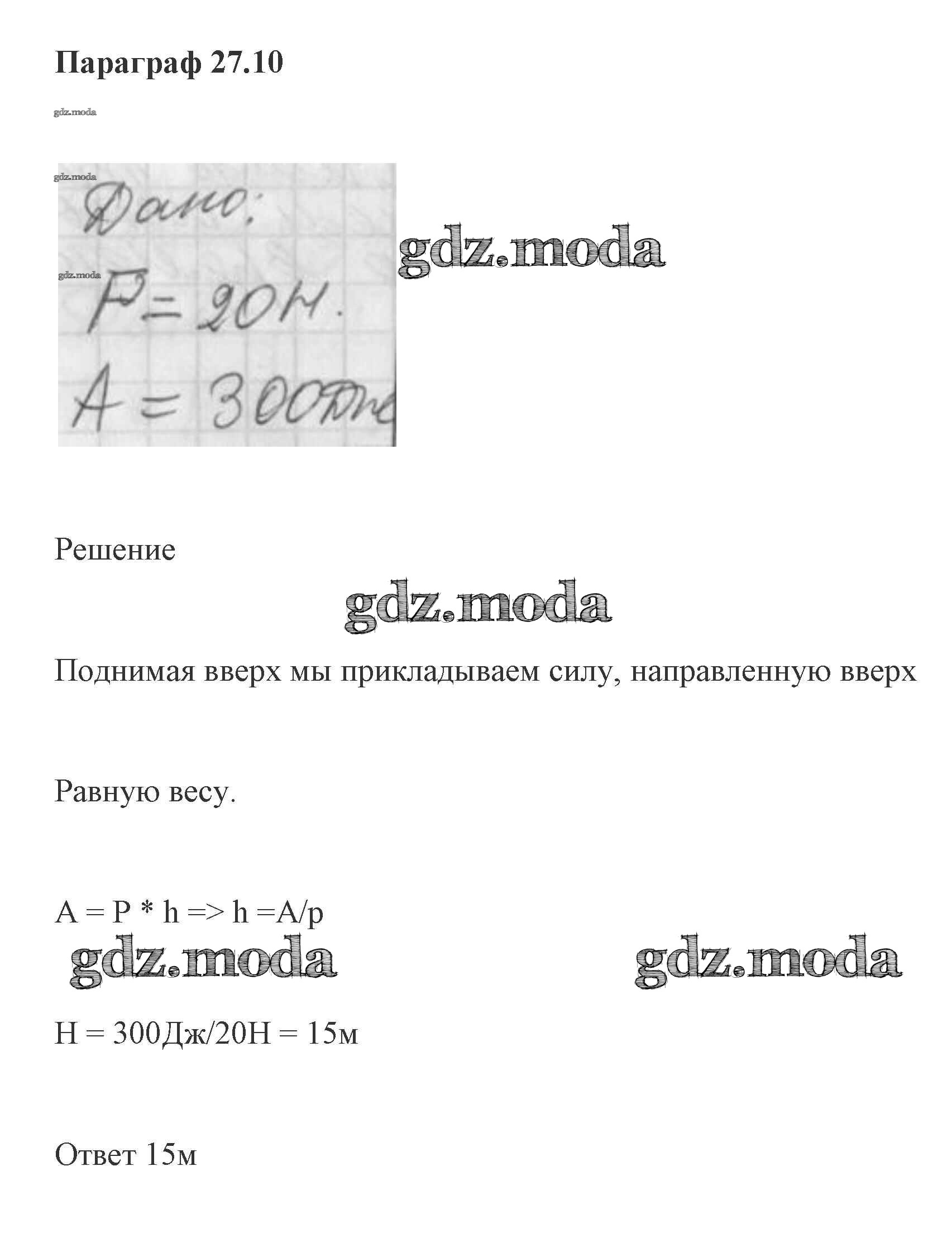 ОТВЕТ на задание № 10 Задачник по Физике 7 класс Генденштейн