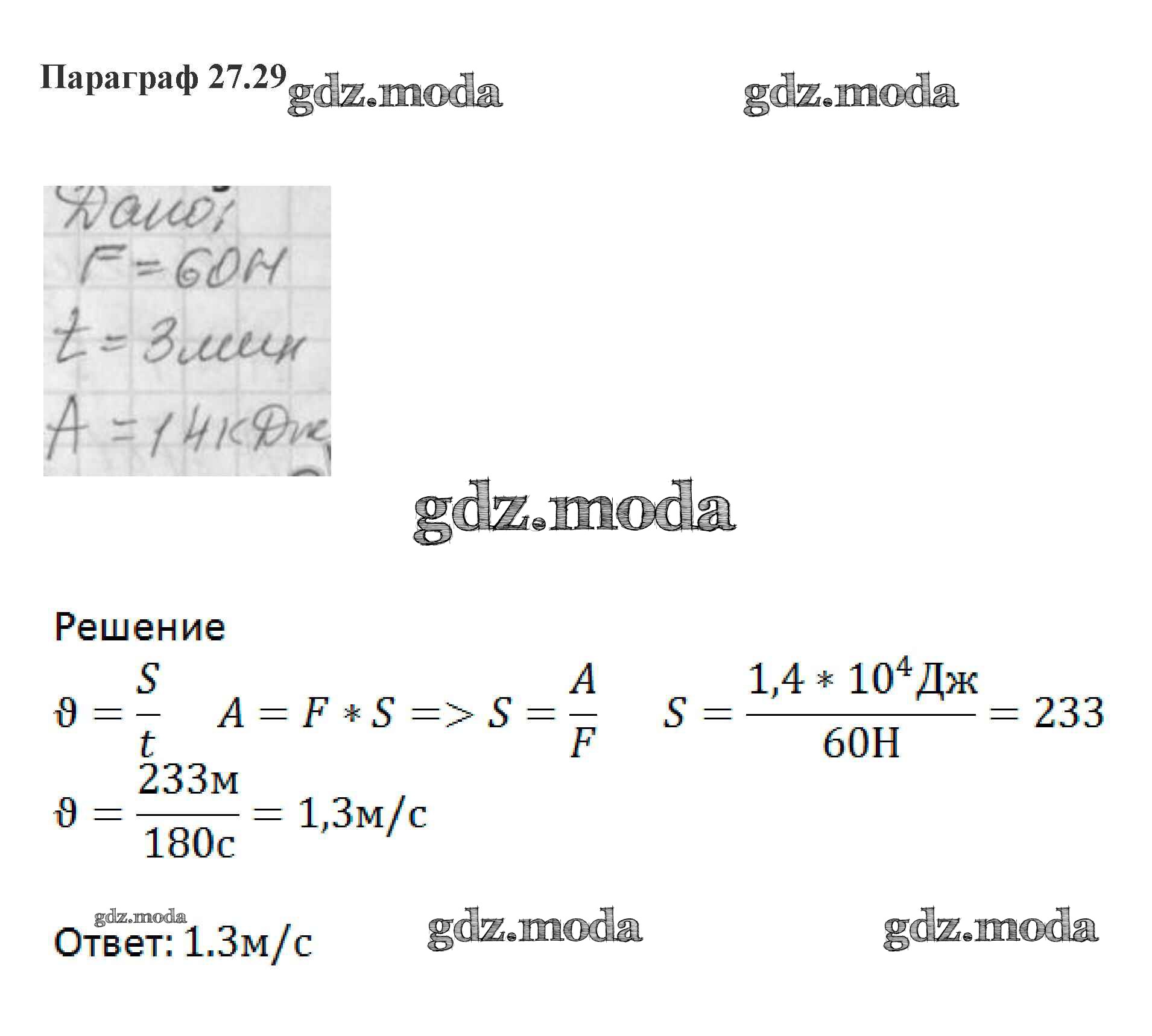 ОТВЕТ на задание № 29 Задачник по Физике 7 класс Генденштейн