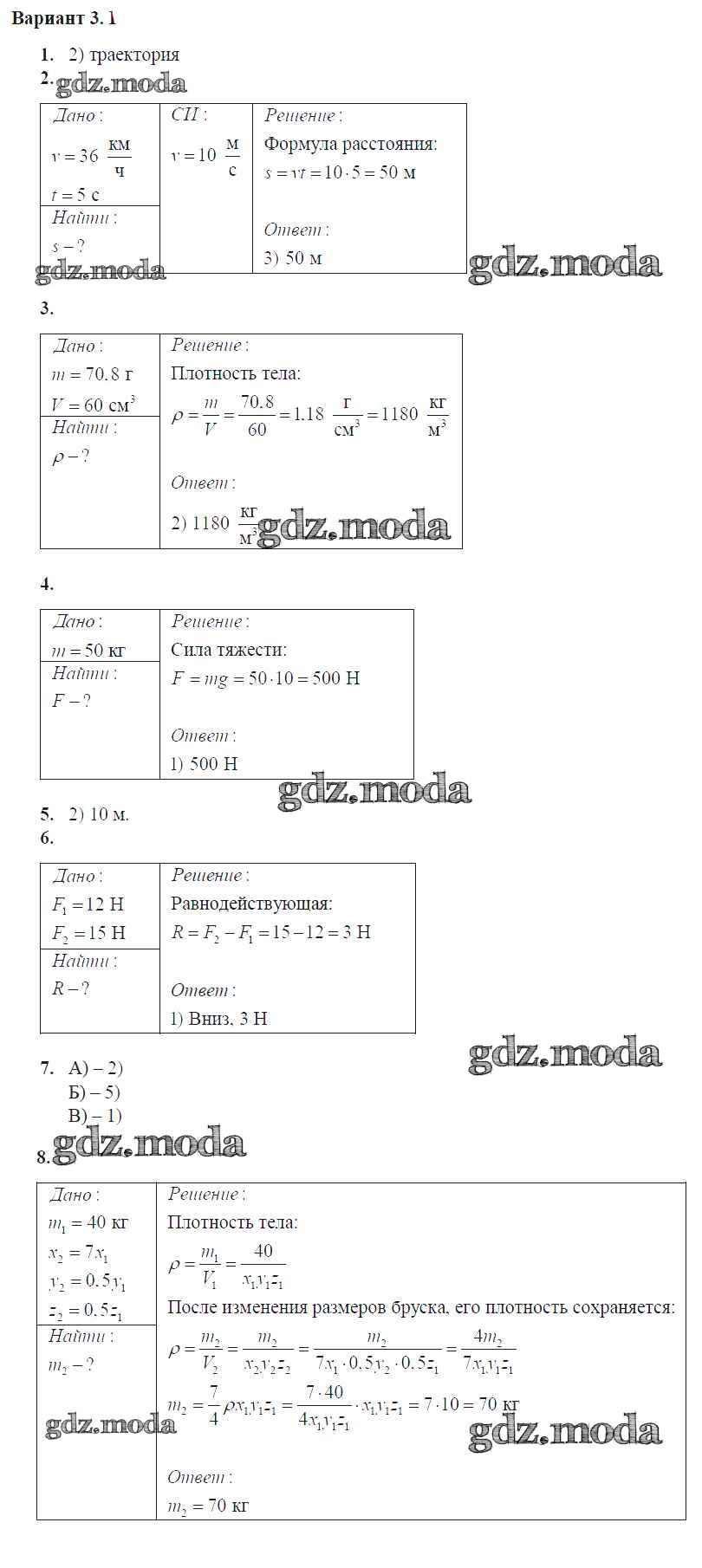 ГДЗ решение к заданию № Вар. 3 Физика 7 класс Контрольные и самостоятельные работы Громцева О.И. (к уч. Перышкина) Экзамен 2020 ФГОС бесплатно на гдз.мода!