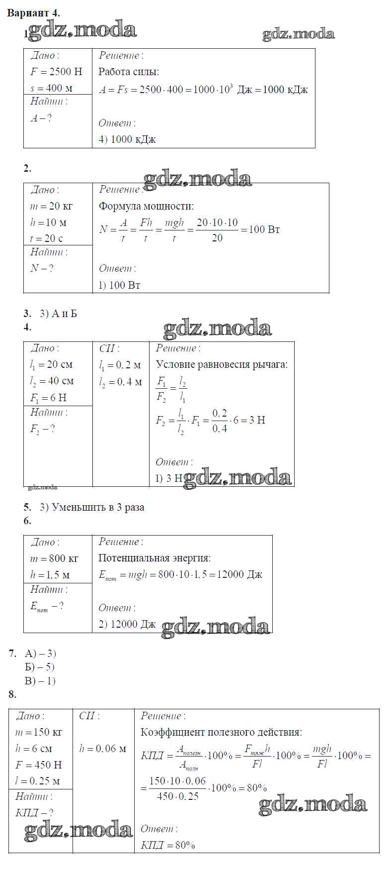 ОТВЕТ на задание № Вар. 4 Контрольные и самостоятельные работы по Физике 7 класс Громцева УМК
