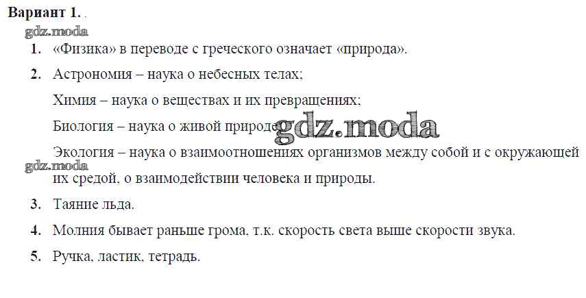 ОТВЕТ на задание № Вар. 1 Контрольные и самостоятельные работы по Физике 7 класс Громцева УМК