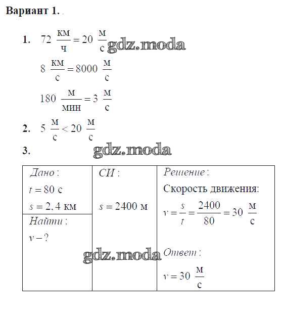 ОТВЕТ на задание № Вар. 1 Контрольные и самостоятельные работы по Физике 7 класс Громцева УМК