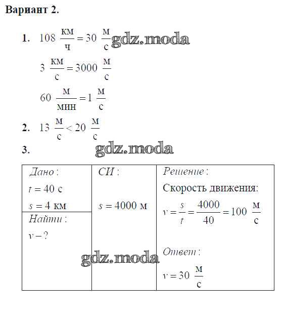самостоятельная работа / ср №11. скорость. единицы скорости / вар. 2