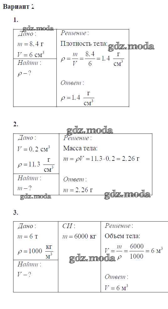 самостоятельная работа / ср №16. расчет массы и объема тела по его плотности / вар. 2