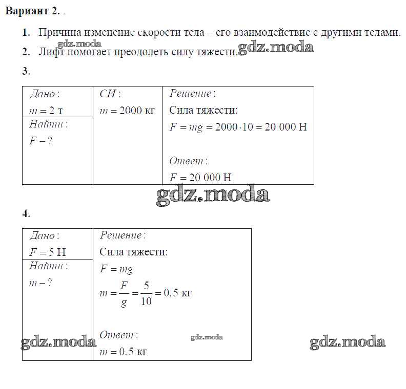 ОТВЕТ на задание № Вар. 2 Контрольные и самостоятельные работы по Физике 7 класс Громцева УМК