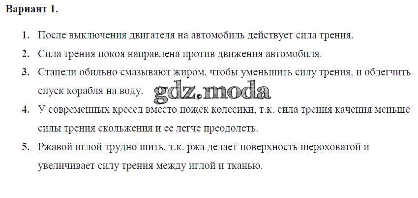 ОТВЕТ на задание № Вар. 1 Контрольные и самостоятельные работы по Физике 7 класс Громцева УМК