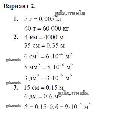 самостоятельная работа / ср №23. единицы измерения массы, длины и площади СИ / вар. 2