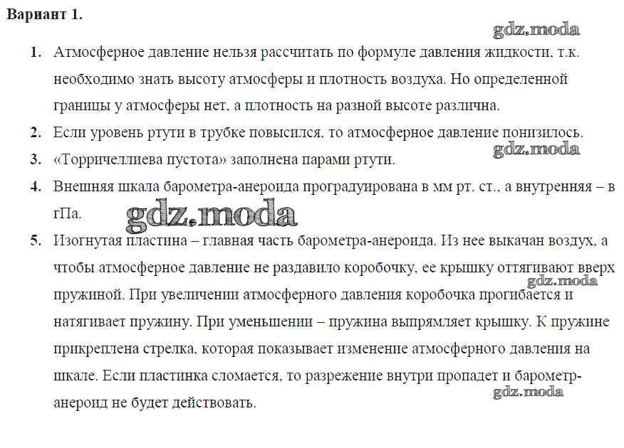 самостоятельная работа / ср №32. измерение атмосферного давления. опыт Торричелли / вар. 1