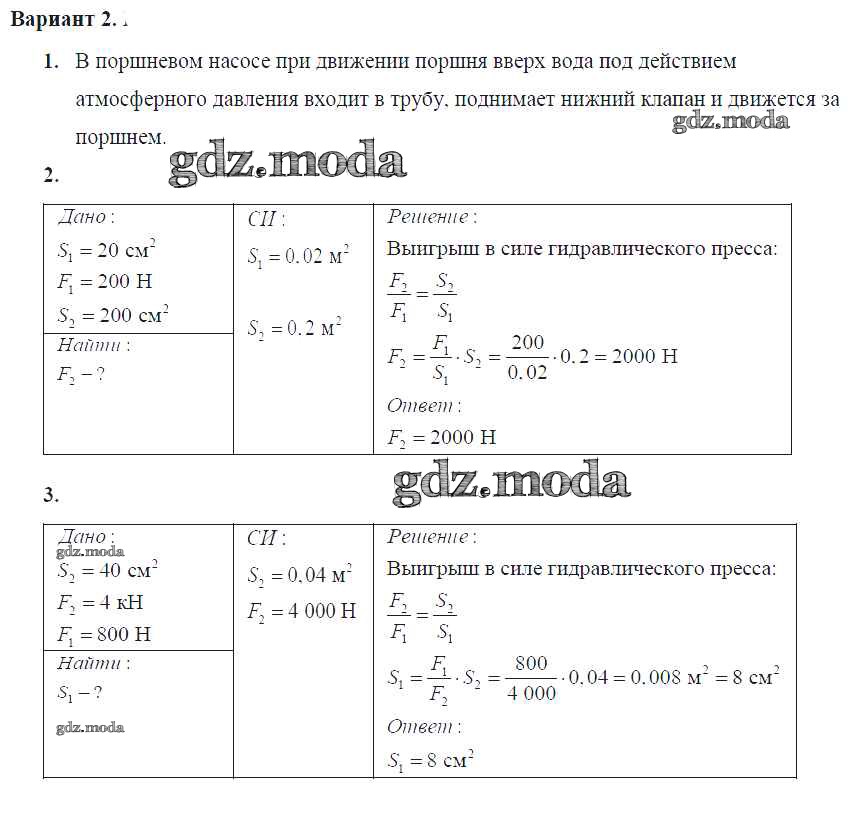 ОТВЕТ на задание № Вар. 2 Контрольные и самостоятельные работы по Физике 7 класс Громцева УМК