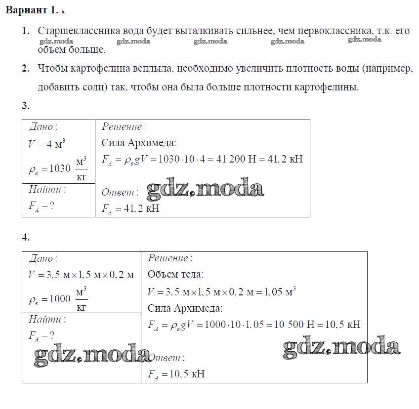 самостоятельная работа / ср №37. Архимедова сила / вар. 1