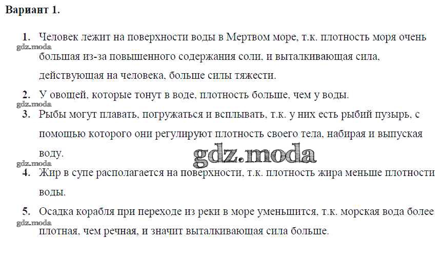 ГДЗ решение к заданию № Вар. 1 Физика 7 класс Контрольные и самостоятельные работы Громцева О.И. (к уч. Перышкина) Экзамен 2020 ФГОС бесплатно на гдз.мода!