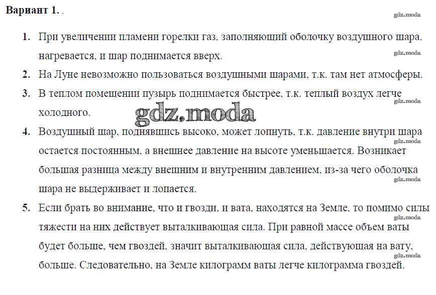 ГДЗ решение к заданию № Вар. 1 Физика 7 класс Контрольные и самостоятельные работы Громцева О.И. (к уч. Перышкина) Экзамен 2020 ФГОС бесплатно на гдз.мода!