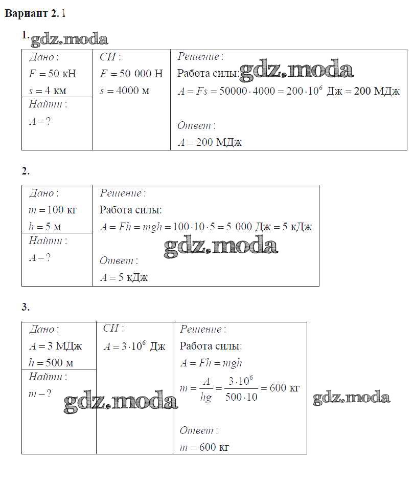 самостоятельная работа / ср №41. механическая работа. единицы работы / вар. 2