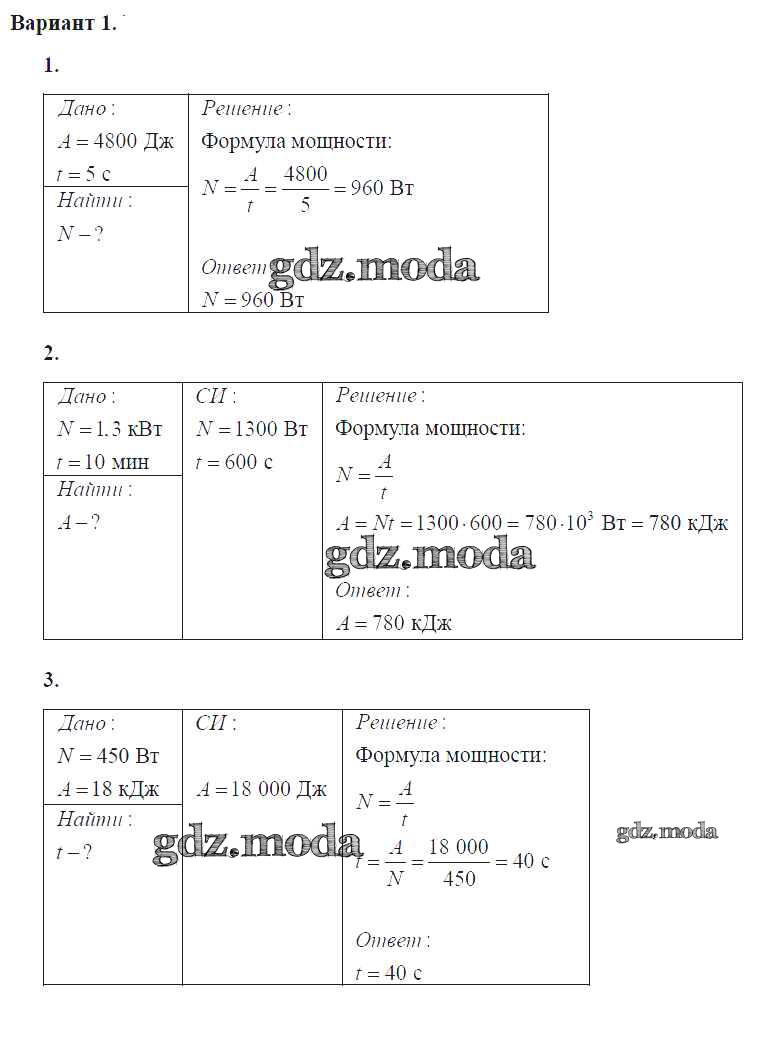ОТВЕТ на задание № Вар. 1 Контрольные и самостоятельные работы по Физике 7 класс Громцева УМК