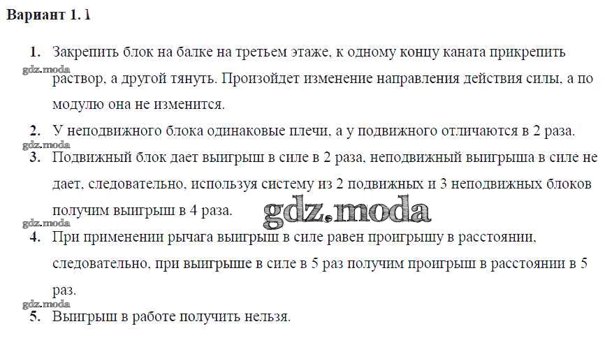 ОТВЕТ на задание № Вар. 1 Контрольные и самостоятельные работы по Физике 7 класс Громцева УМК