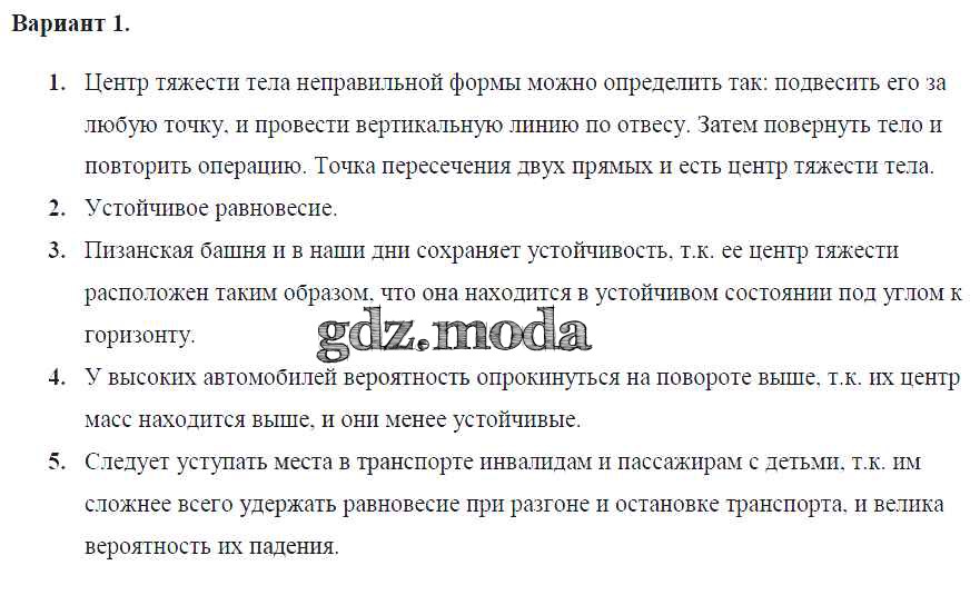 самостоятельная работа / ср №47. центр тяжести. условия равновесия тел / вар. 1