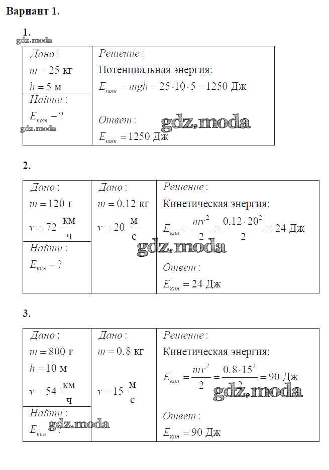 самостоятельная работа / ср №50. виды механической энергии / вар. 1