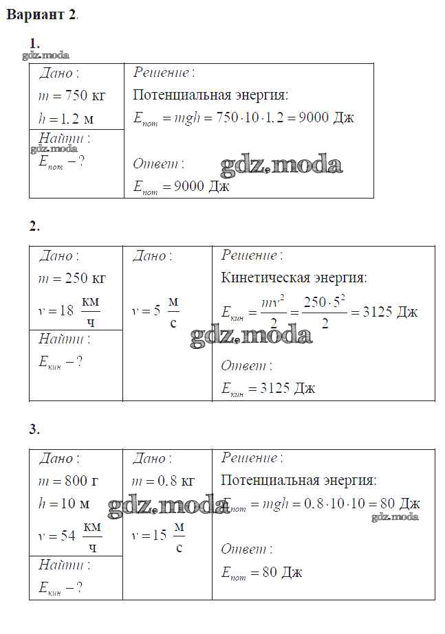 самостоятельная работа / ср №50. виды механической энергии / вар. 2