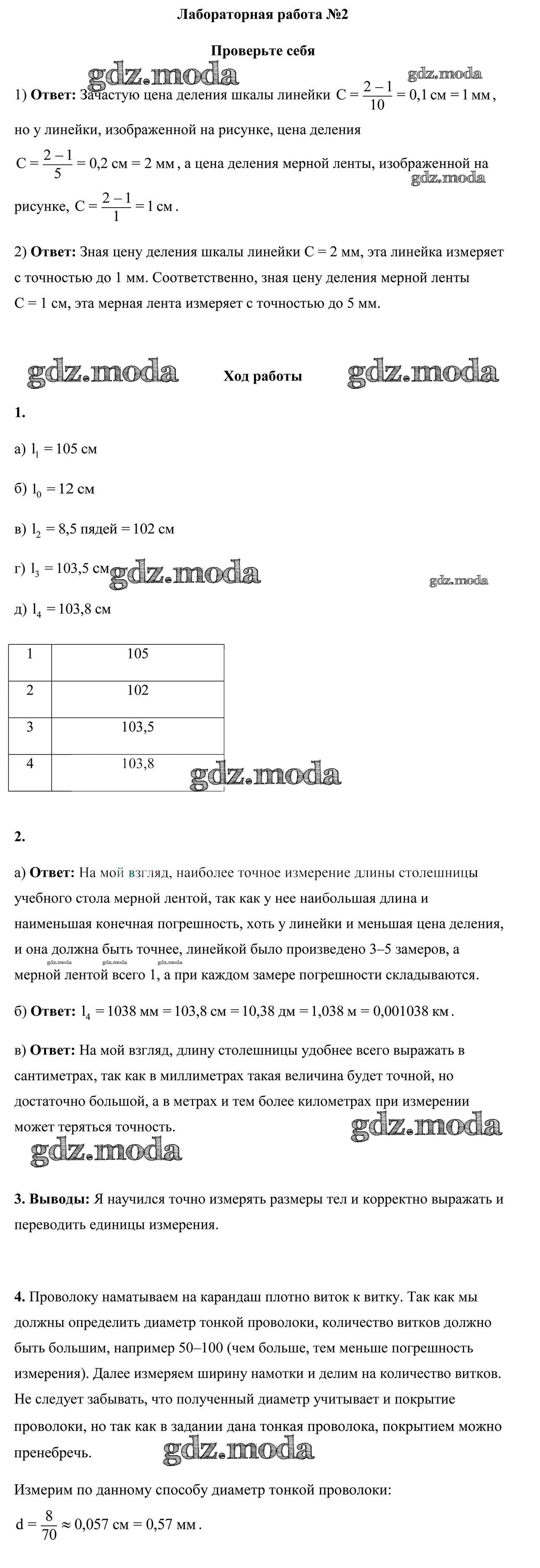 ГДЗ решение к заданию № 2 Физика 7 класс лабораторные работы Исаченкова Л.А. Аверсэв 2016 бесплатно на гдз.мода!