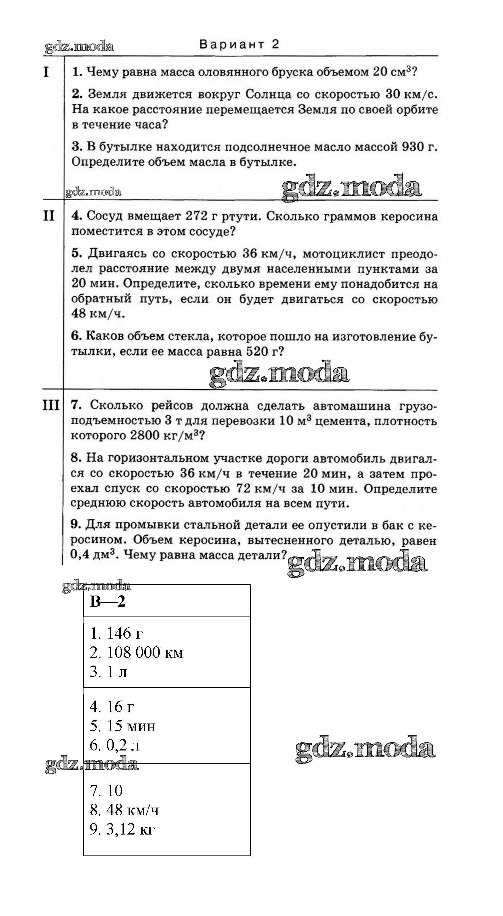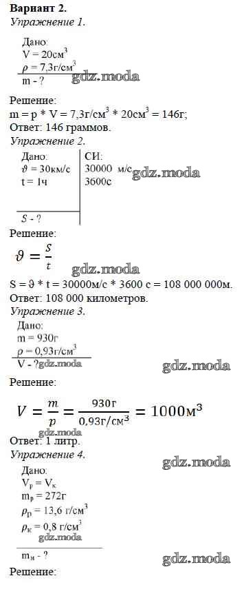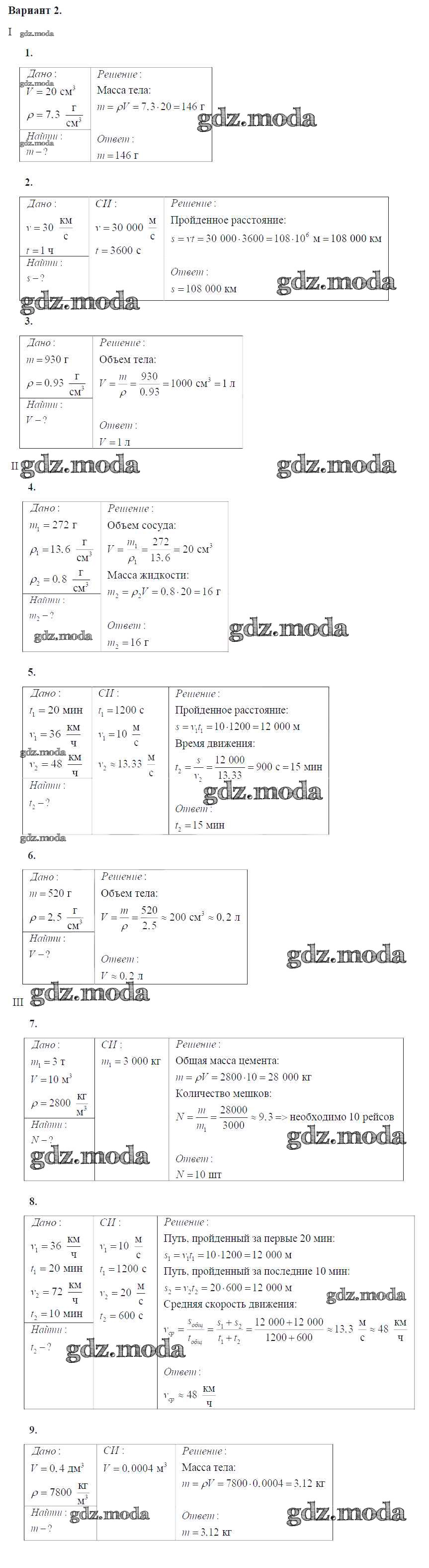 ОТВЕТ на задание № Вариант №2 Дидактические материалы по Физике 7 класс Марон Вертикаль