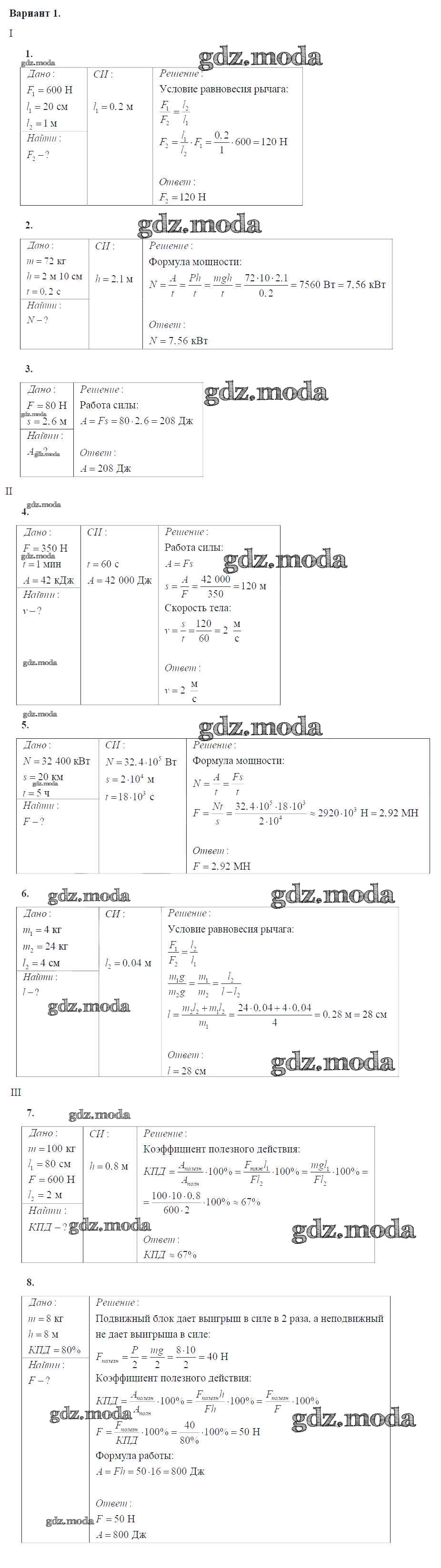ОТВЕТ на задание № Вариант №1 Дидактические материалы по Физике 7 класс Марон Вертикаль