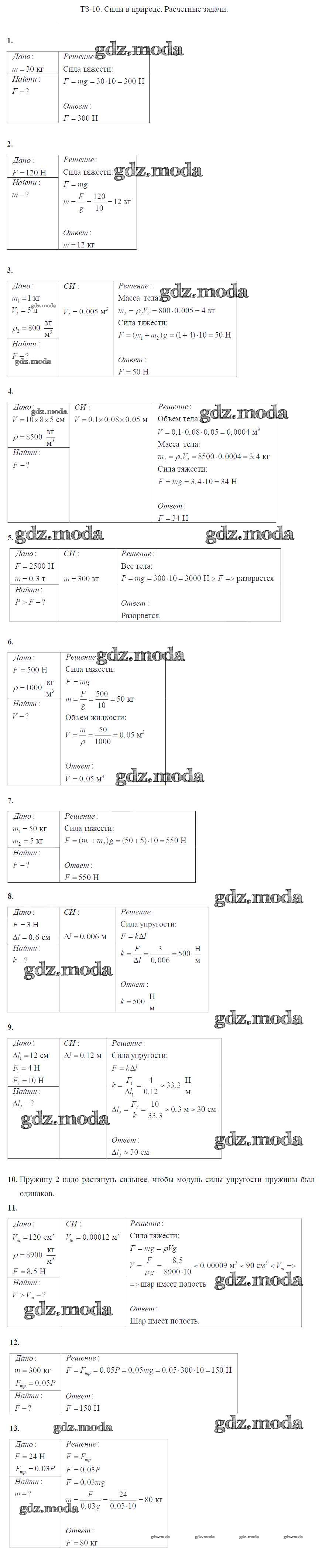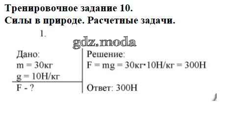 ОТВЕТ на задание № Задание №10. Силы в природе. Расчетные задачи Дидактические материалы по Физике 7 класс Марон Вертикаль