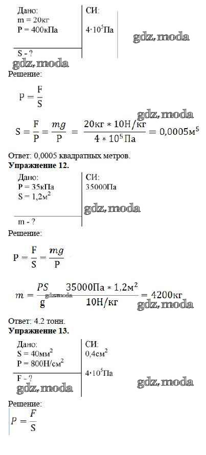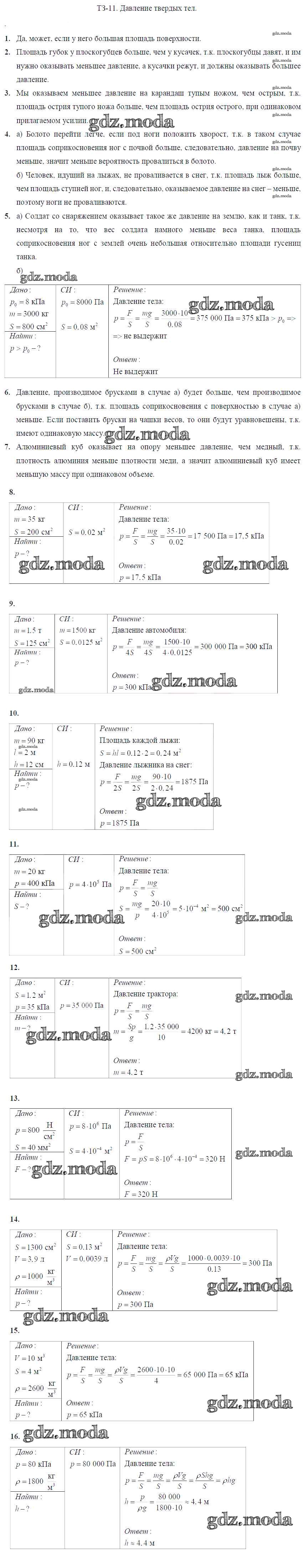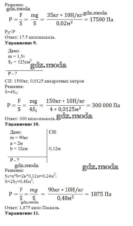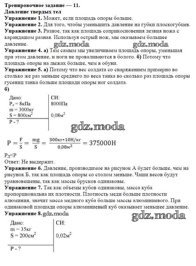 ОТВЕТ на задание № Задание №11. Давление твердых тел Дидактические материалы по Физике 7 класс Марон Вертикаль