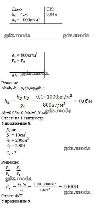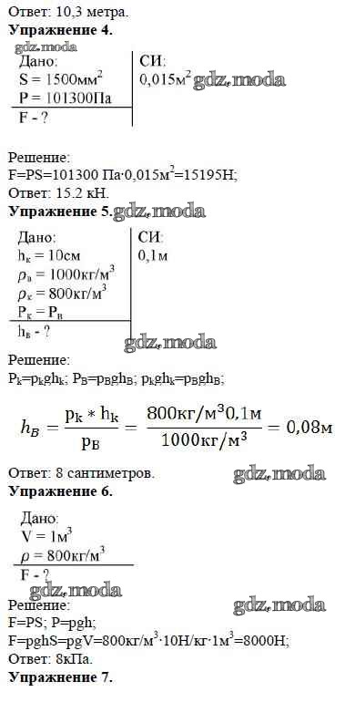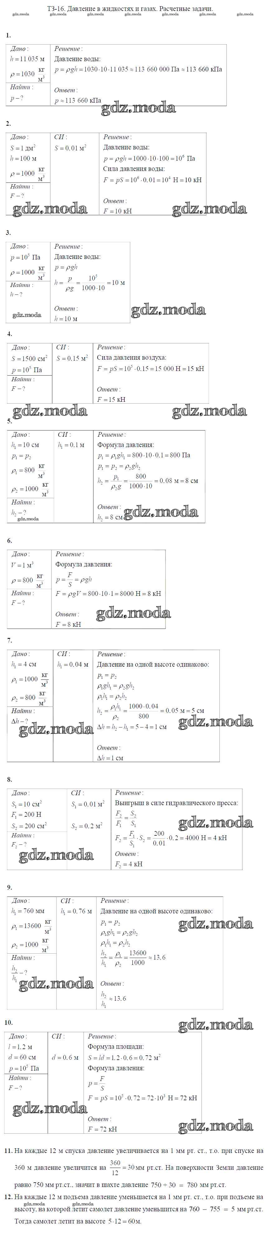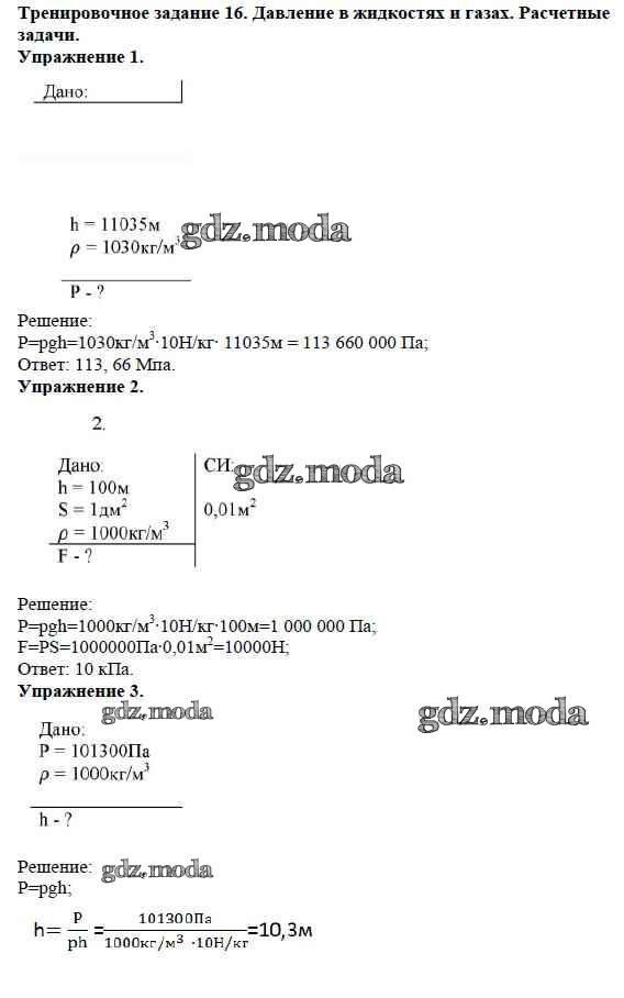 ОТВЕТ на задание № Задание №16. Давление в жидкостях и газах. Расчетные задачи Дидактические материалы по Физике 7 класс Марон Вертикаль
