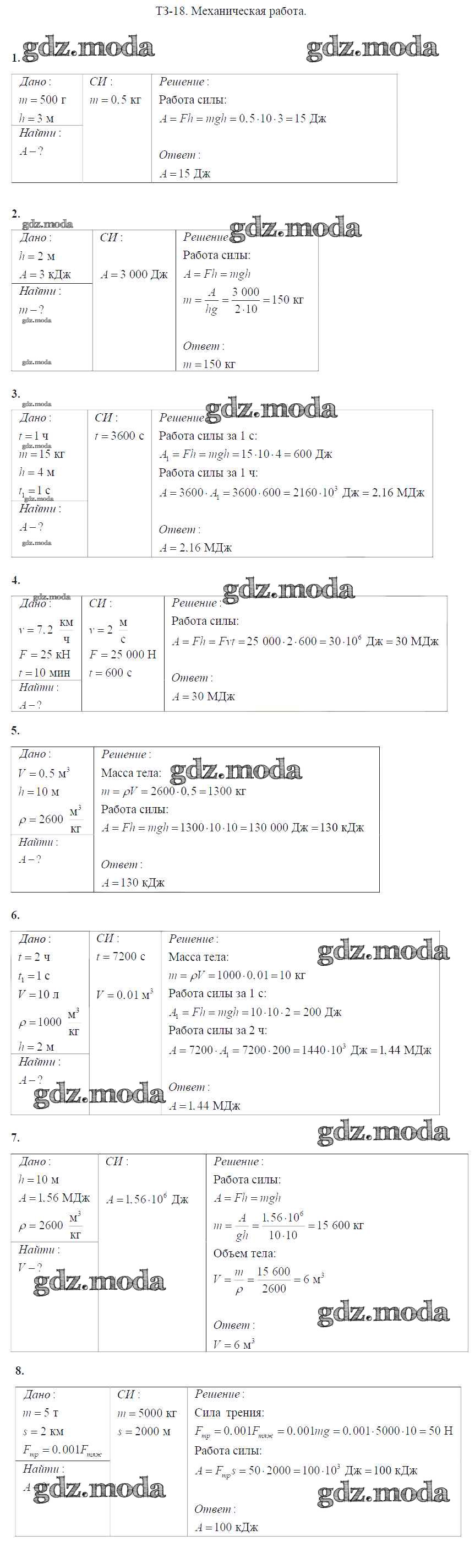ОТВЕТ на задание № Задание №18. Механическая работа Дидактические материалы по Физике 7 класс Марон Вертикаль