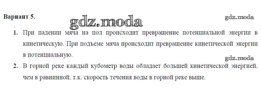 ОТВЕТ на задание № Вариант №5 Дидактические материалы по Физике 7 класс Марон Вертикаль