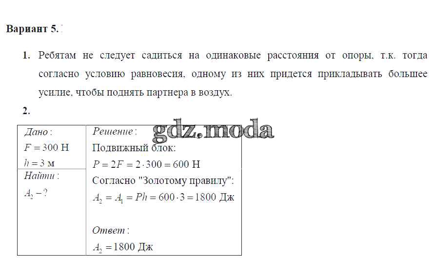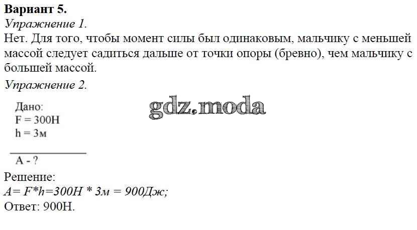 ОТВЕТ на задание № Вариант №5 Дидактические материалы по Физике 7 класс Марон Вертикаль