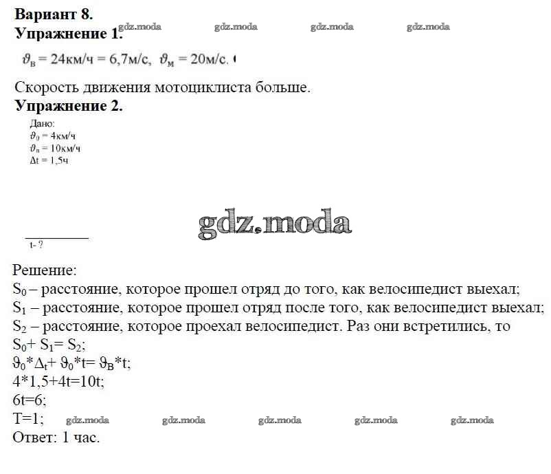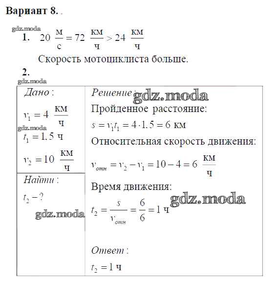 ОТВЕТ на задание № Вариант №8 Дидактические материалы по Физике 7 класс Марон Вертикаль