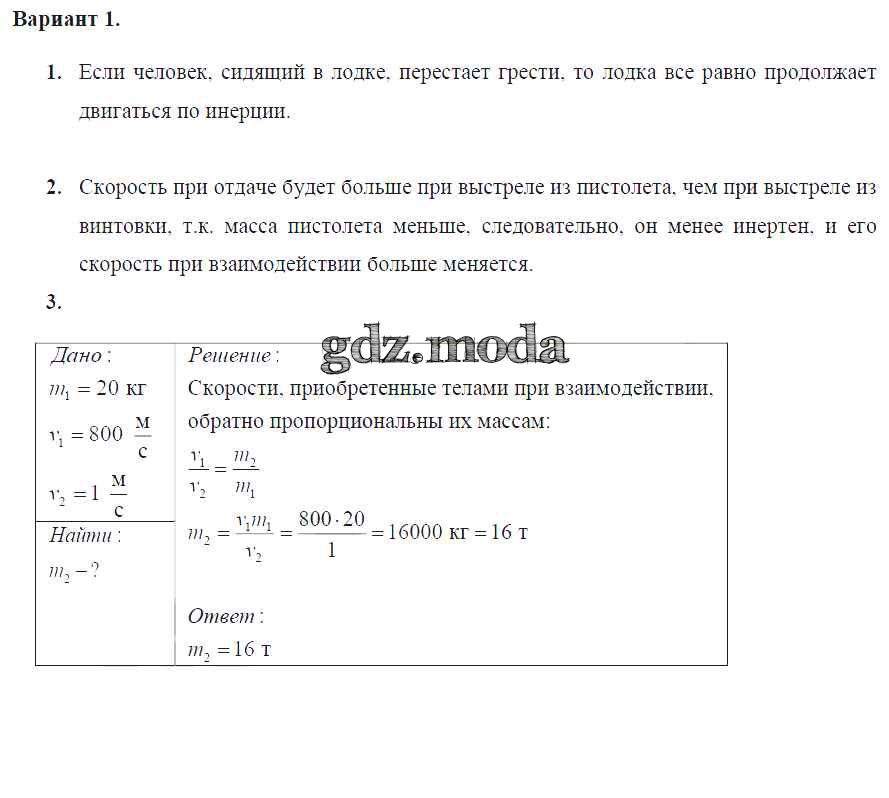 ОТВЕТ на задание № Вариант №1 Дидактические материалы по Физике 7 класс Марон Вертикаль