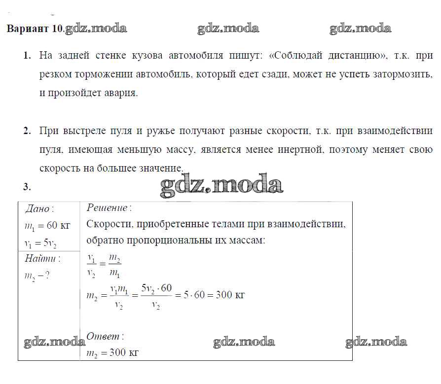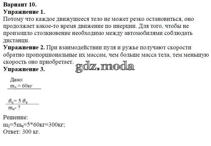 ОТВЕТ на задание № Вариант №10 Дидактические материалы по Физике 7 класс Марон Вертикаль