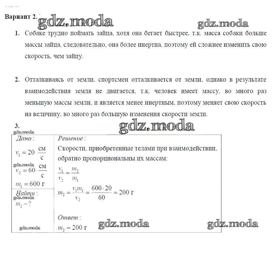 ОТВЕТ на задание № Вариант №2 Дидактические материалы по Физике 7 класс Марон Вертикаль