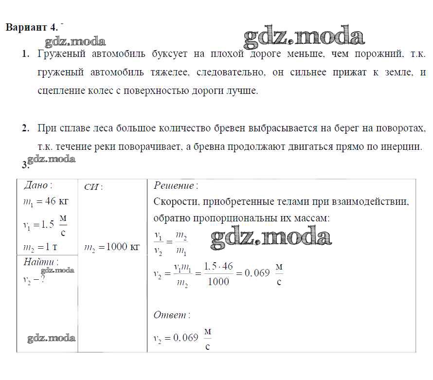 ОТВЕТ на задание № Вариант №4 Дидактические материалы по Физике 7 класс Марон Вертикаль