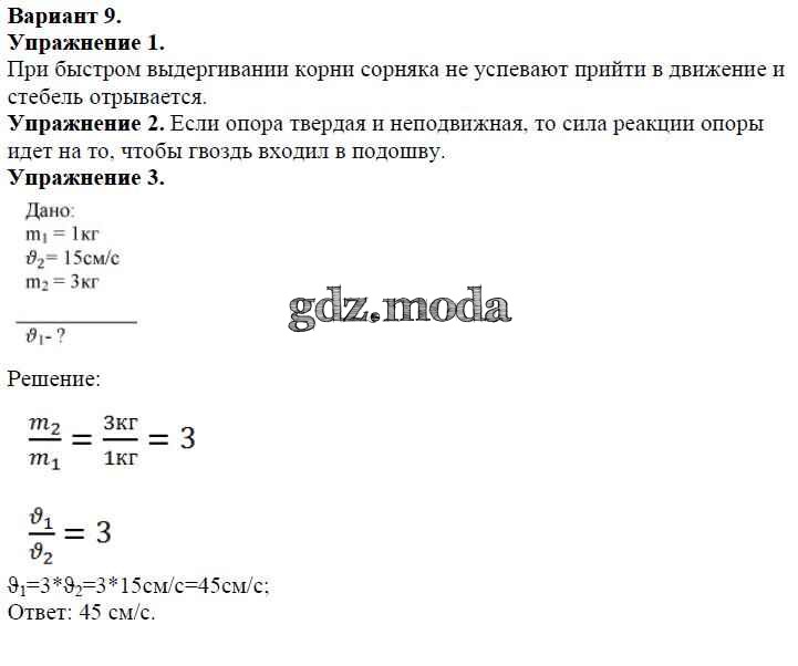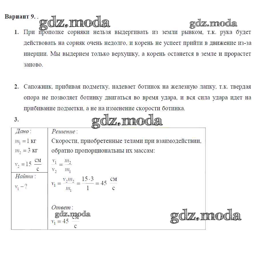 ОТВЕТ на задание № Вариант №9 Дидактические материалы по Физике 7 класс Марон Вертикаль