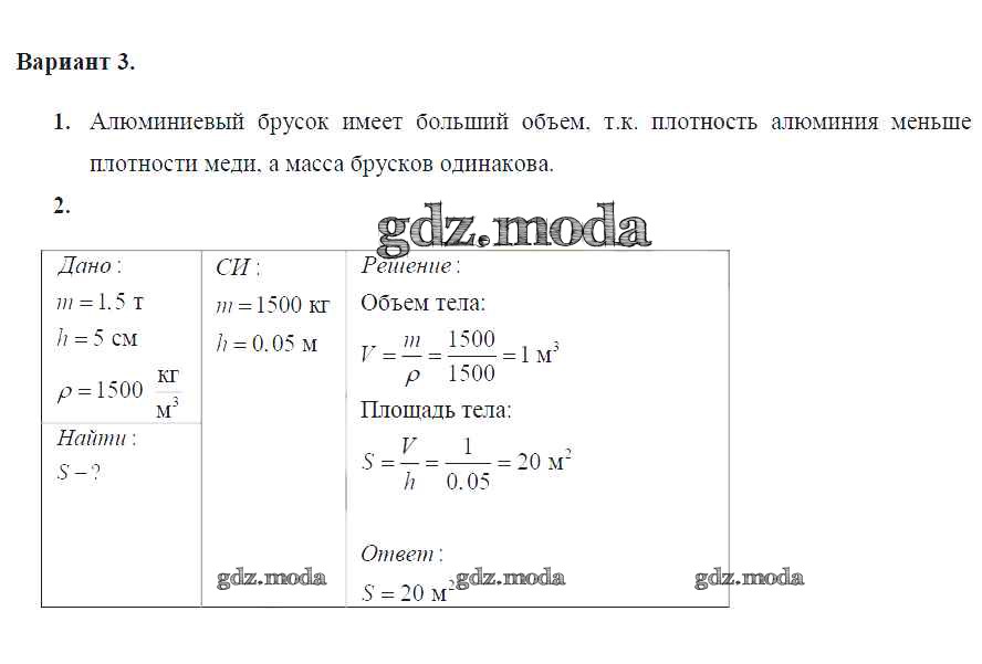 ОТВЕТ на задание № Вариант №3 Дидактические материалы по Физике 7 класс Марон Вертикаль