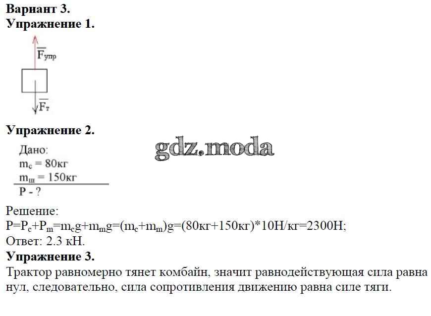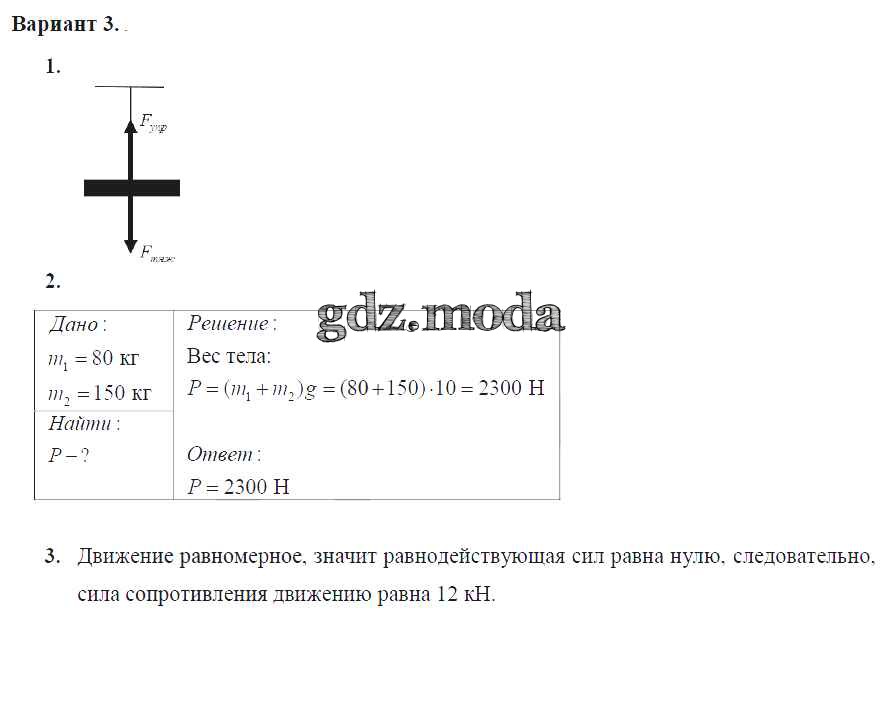ОТВЕТ на задание № Вариант №3 Дидактические материалы по Физике 7 класс Марон Вертикаль