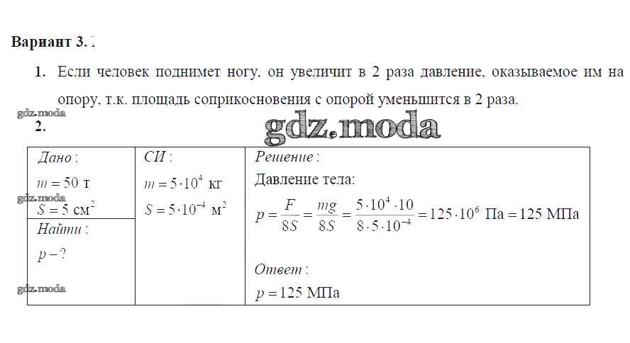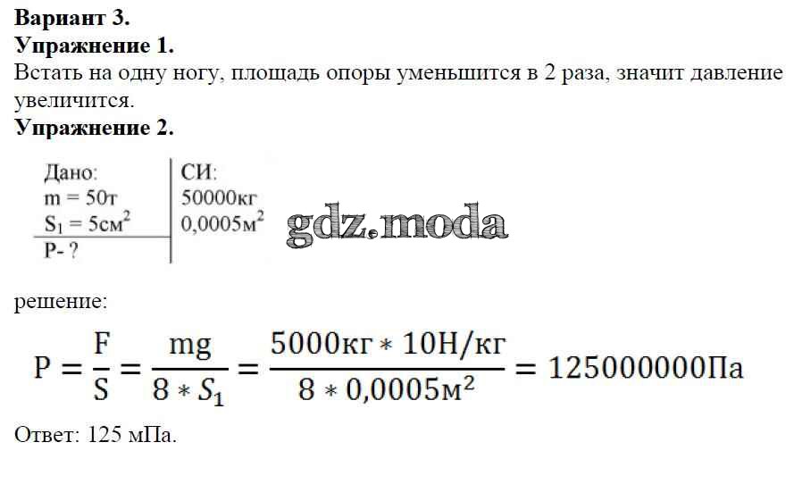 ОТВЕТ на задание № Вариант №3 Дидактические материалы по Физике 7 класс Марон Вертикаль