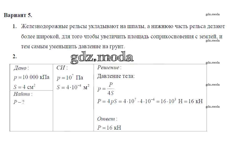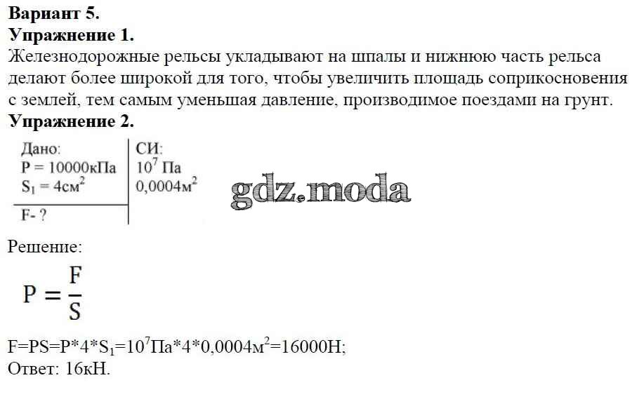 ОТВЕТ на задание № Вариант №5 Дидактические материалы по Физике 7 класс Марон Вертикаль