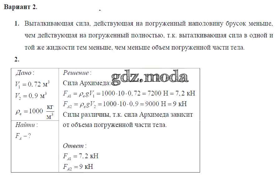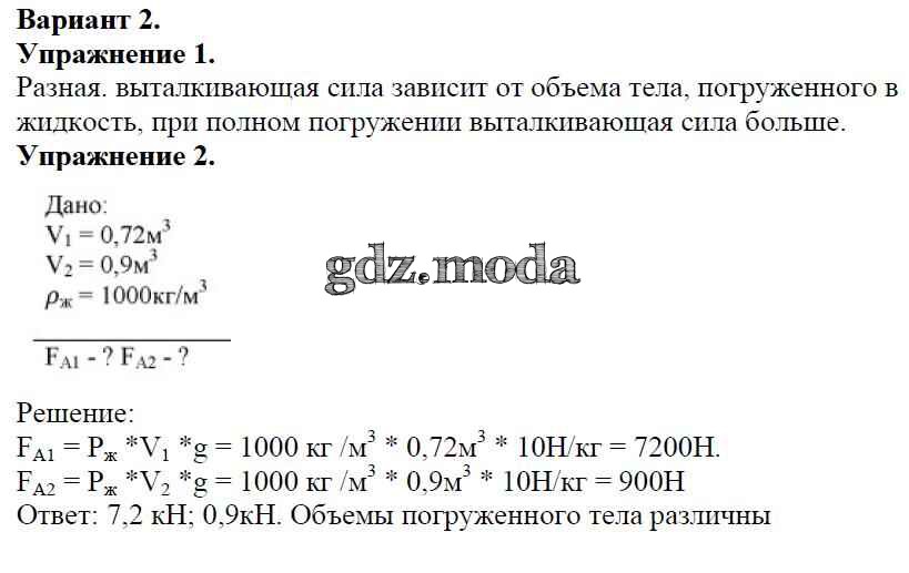 ОТВЕТ на задание № Вариант №2 Дидактические материалы по Физике 7 класс Марон Вертикаль