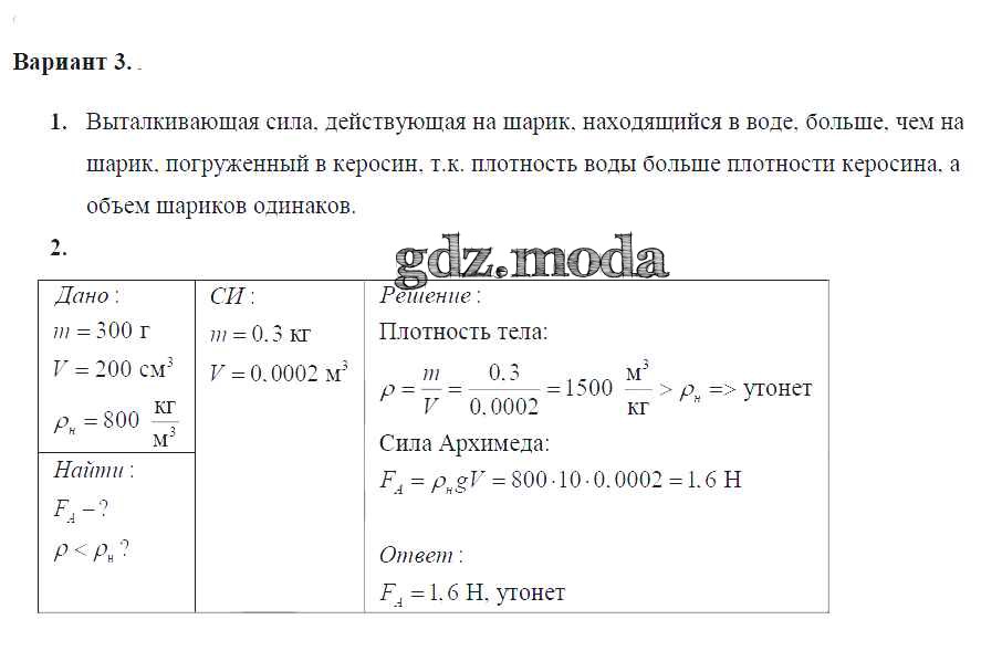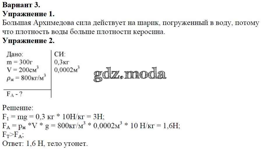 ОТВЕТ на задание № Вариант №3 Дидактические материалы по Физике 7 класс Марон Вертикаль