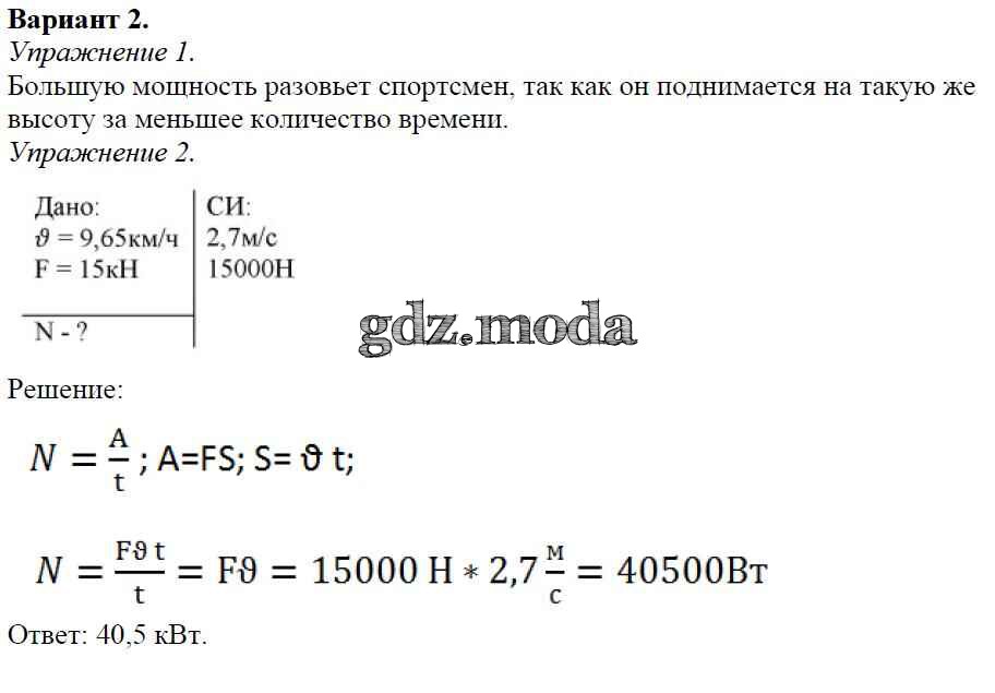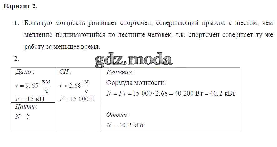 ОТВЕТ на задание № Вариант №2 Дидактические материалы по Физике 7 класс Марон Вертикаль